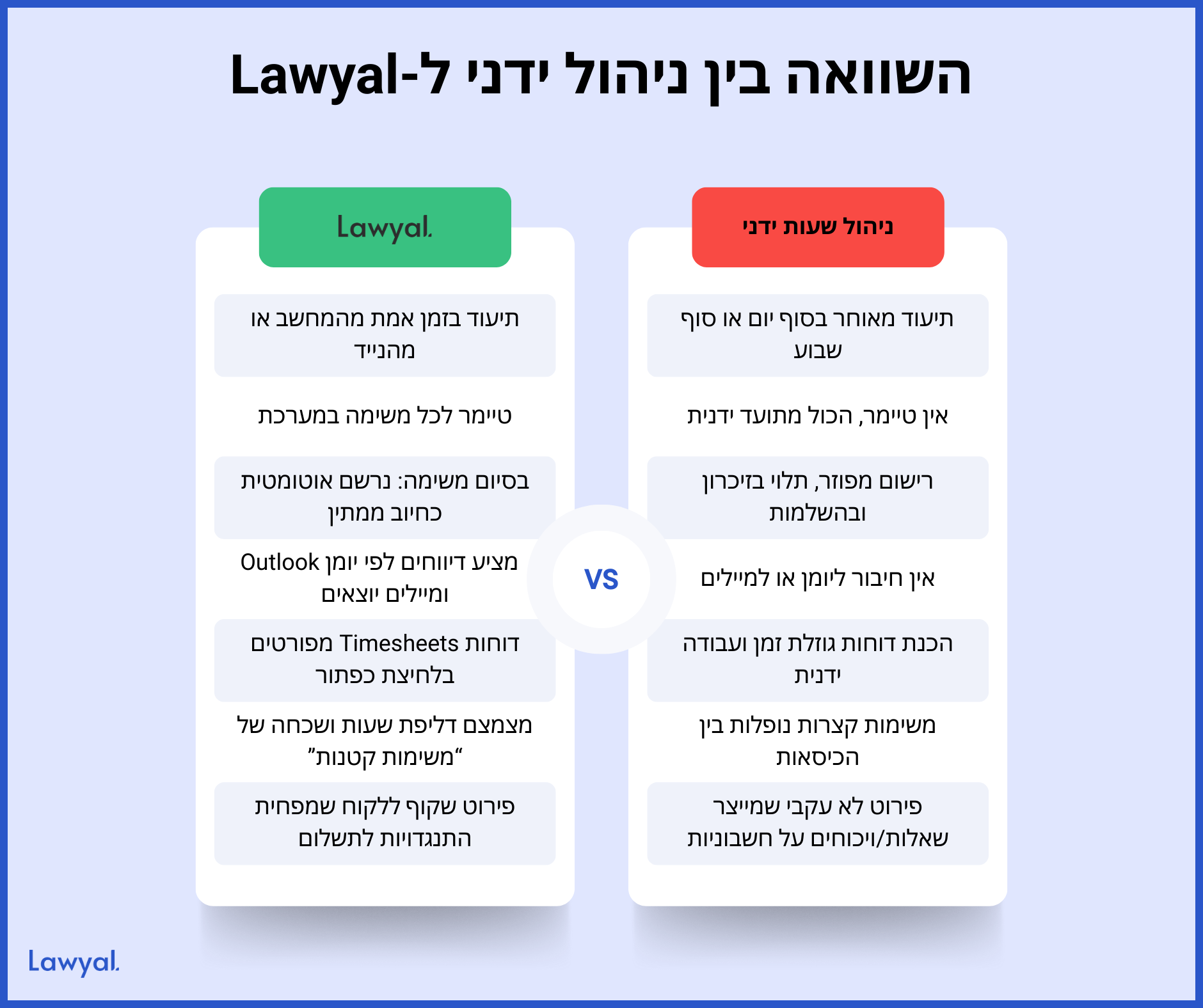 הגיע הזמן לחתוך בשעות העבודה האבודות ולעבור ל-Lawyal!